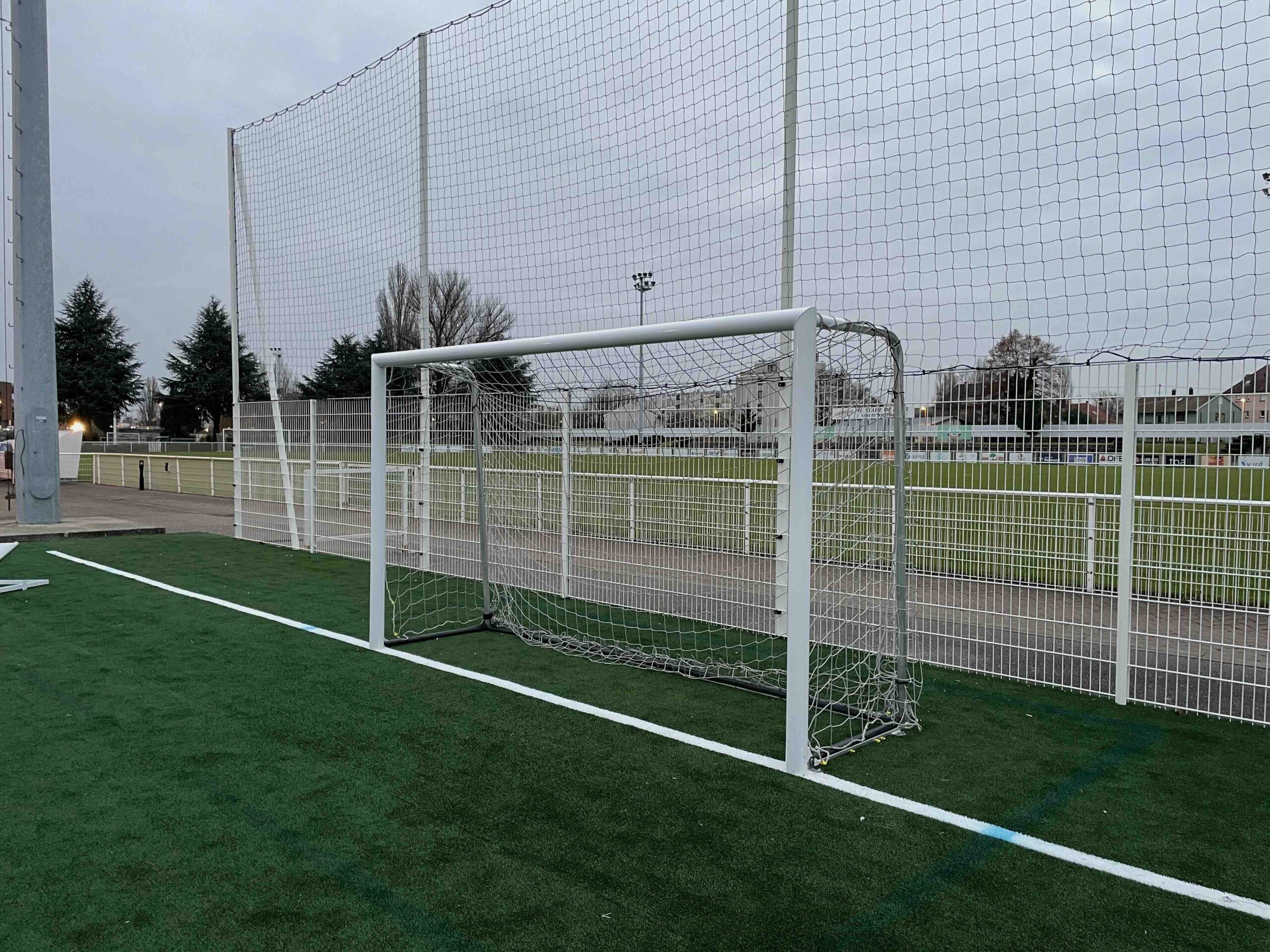 Filet de Football à 11 – dimensions 7,50 x 2,50 ml, maille 120 mm Fil 4 mm sans nœud 80/200 Blanc / Vert